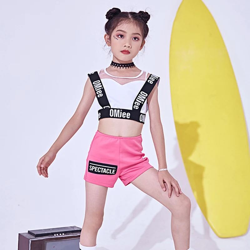 2020 New Hip Hop Kids Jazz Pink Cheerleading Dance Costumes Stage Outfit Girls Child Jazz Street Da